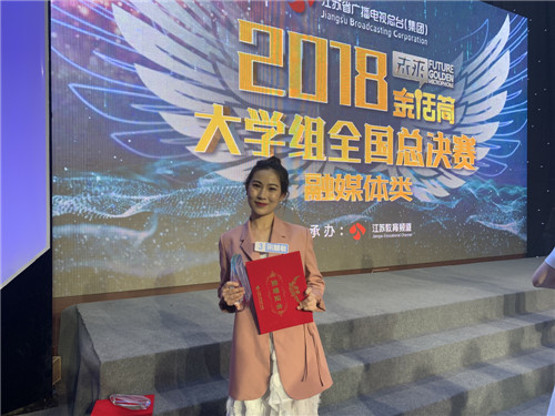 “未来金话筒”大赛是全国性的致力于发掘、培养新一代播音员主持人、融媒体及应用型主持人的专业平台。本届比赛吸引了全国30个赛区、400余所高校、一万多名选手报名。大赛经过分赛区预选赛、初赛、复赛、决赛的层层选拔,最终,160名优秀选手进入全国总决赛。宋慧敏结合当下社会热点,以精彩的有声语言艺术形式,将自己对专业的理解呈现出来,体现出不俗的专业水准,给专家及观众留下了深刻的印象并勇夺大奖。